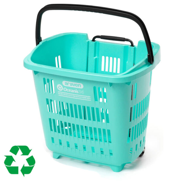 Műanyag 34 literes bevásárló kosár óceán színben fekete színű füllel.