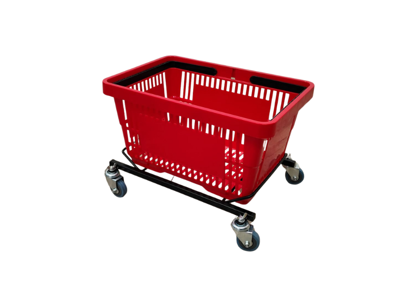 Gurulós fekete kosártartó 22 literes bevásárló kosárhoz.
