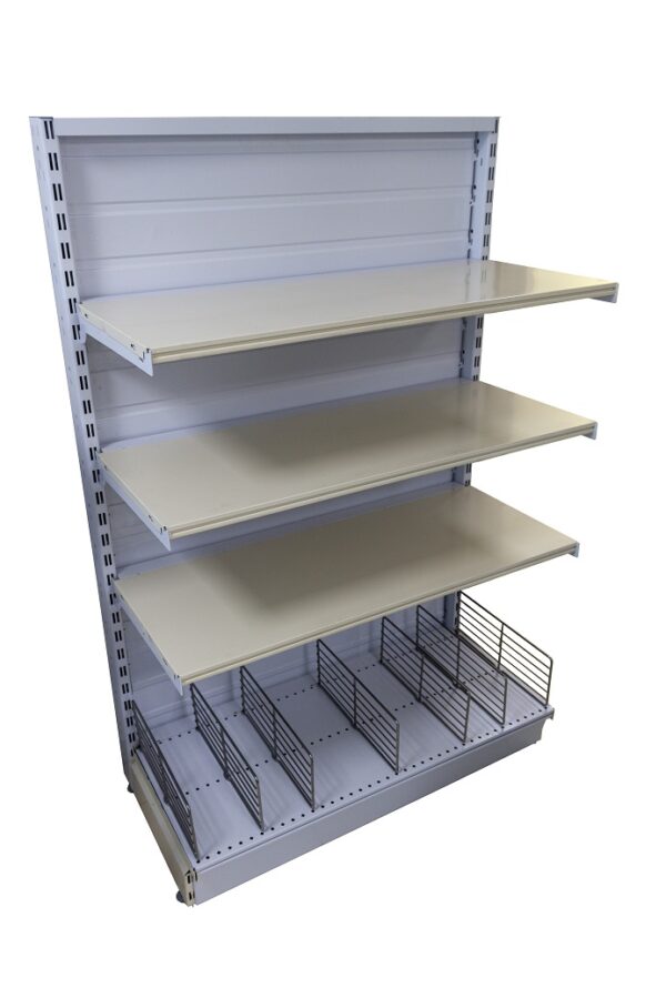 KOMPLETT KÖZÉP HÁTFALAS ÁLLVÁNY fehér és krém színben, króm színű polcosztókkal